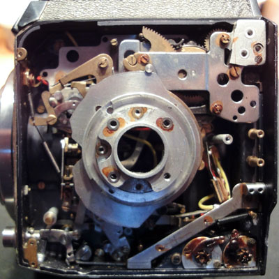 de la manivelle d'avancement/armement, relevage manuel du mirroir